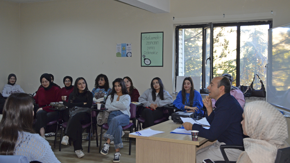 Öğrencilerin yoğun katılımı ile gerçekleştirilen etkinlikte Sosyal Çalışmacı Mehmet Yıldız tarafından bireylerin bağımlılıktan uzak, sağlıklı ve sürdürülebilir bir yaşam kurabilmeleri için gerekli beceriler anlatıldı.